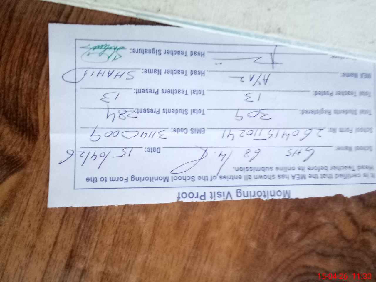 | EMIS Code: 31140009 | Name of School: GHS CHAK 68/4-R | |||