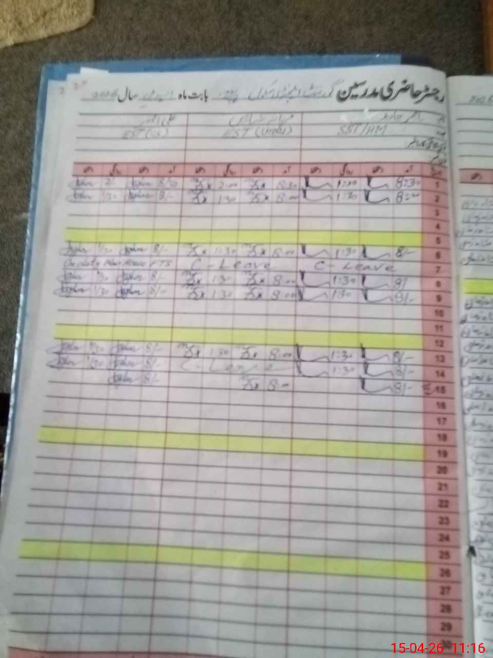 | CNIC | Full Name | Designation | R/C | Absence During Last Calender Month |