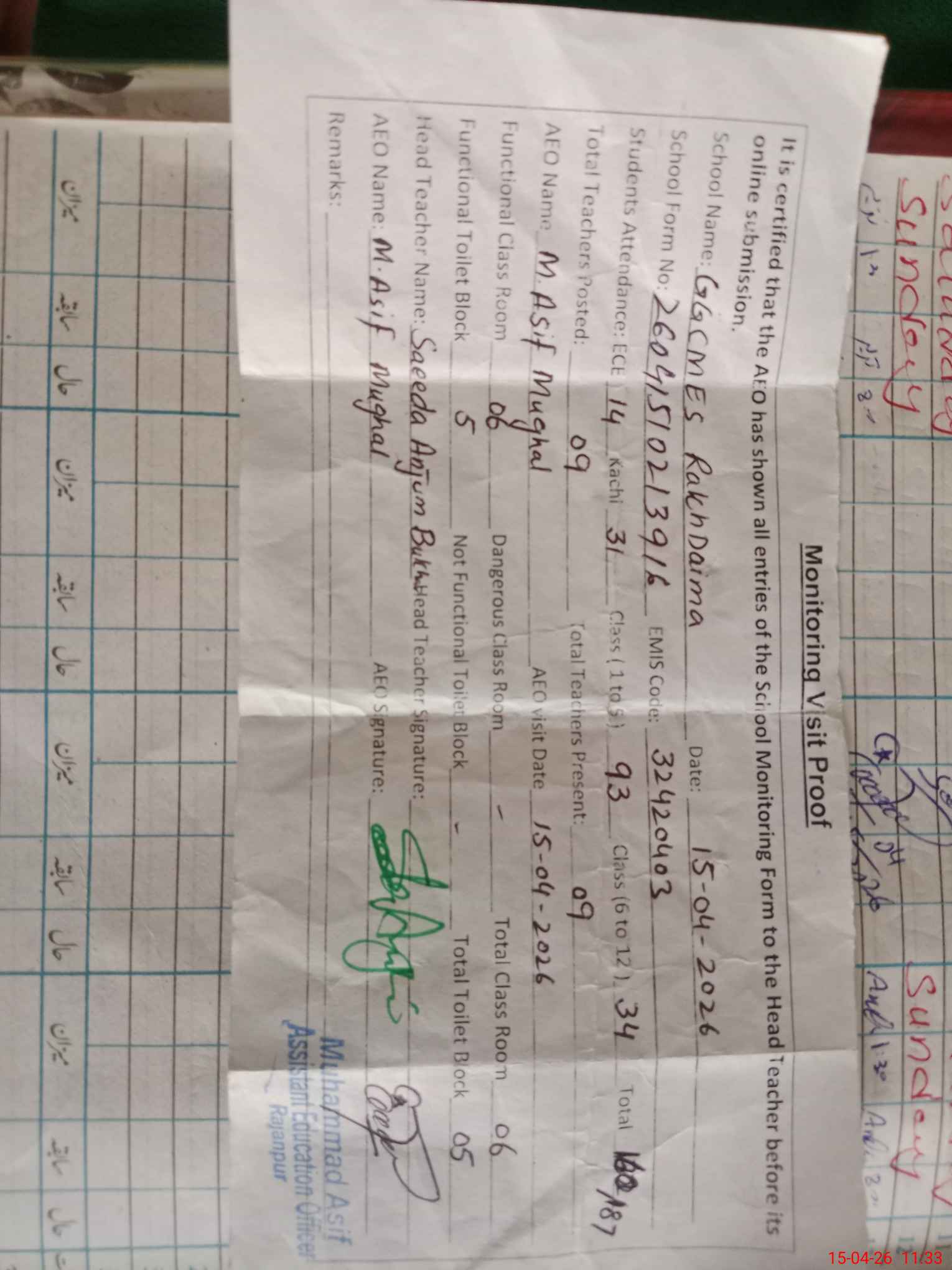 | EMIS Code: 32420403 | Name of School: GGCMES RAKH DAMA | |||