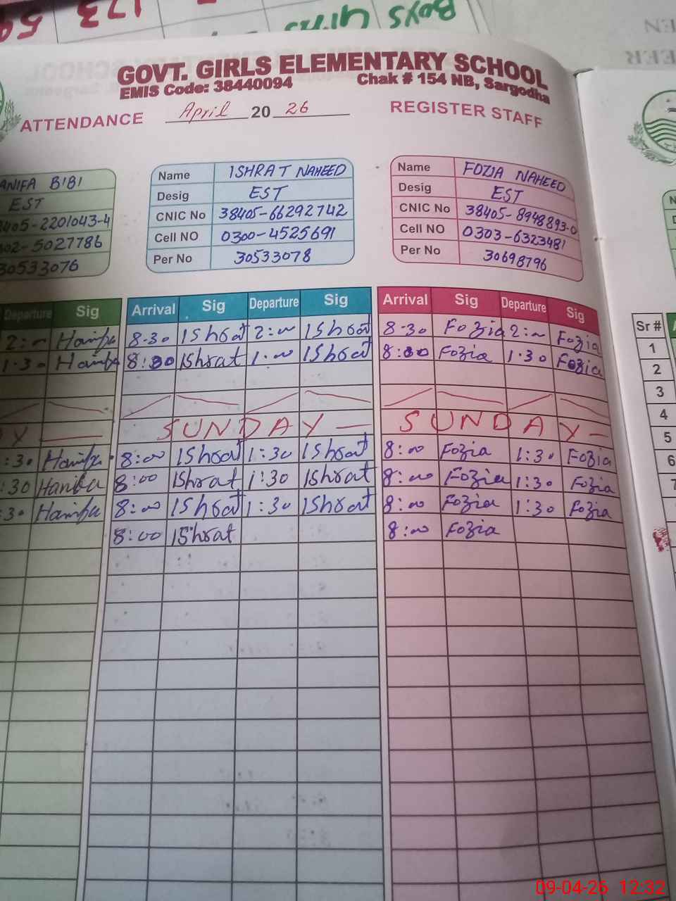 | CNIC | Full Name | Designation | R/C | Absence During Last Calender Month |
