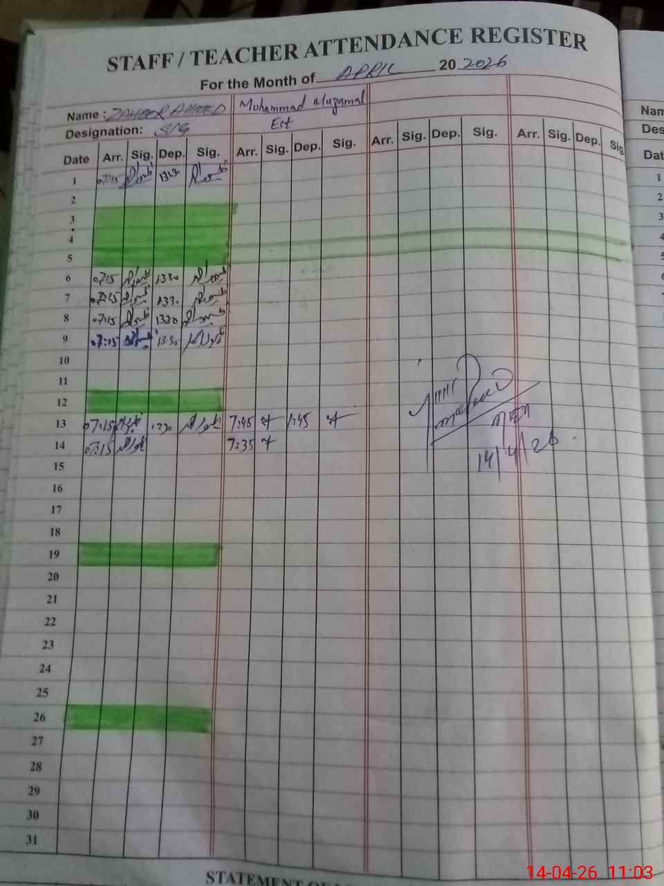 | 37**** | Ta**** Ab**** | SST Arts | Regular | 0 | 0 | 0 | 0 | 0 | 0 | 0 | 0 | 0 | Exam Duty |