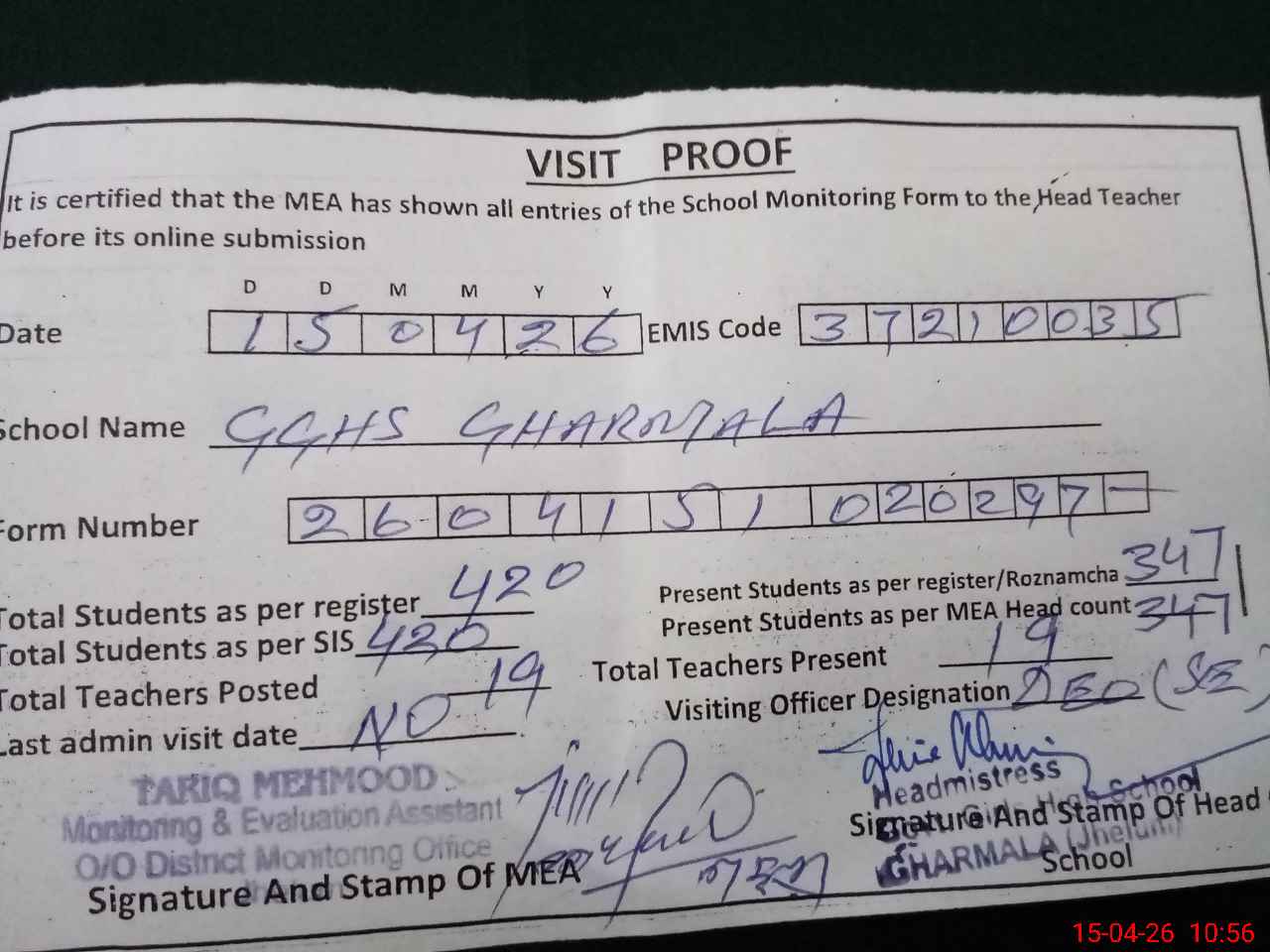 | EMIS Code: 37210035 | Name of School: GGHS GHARMALA | |||