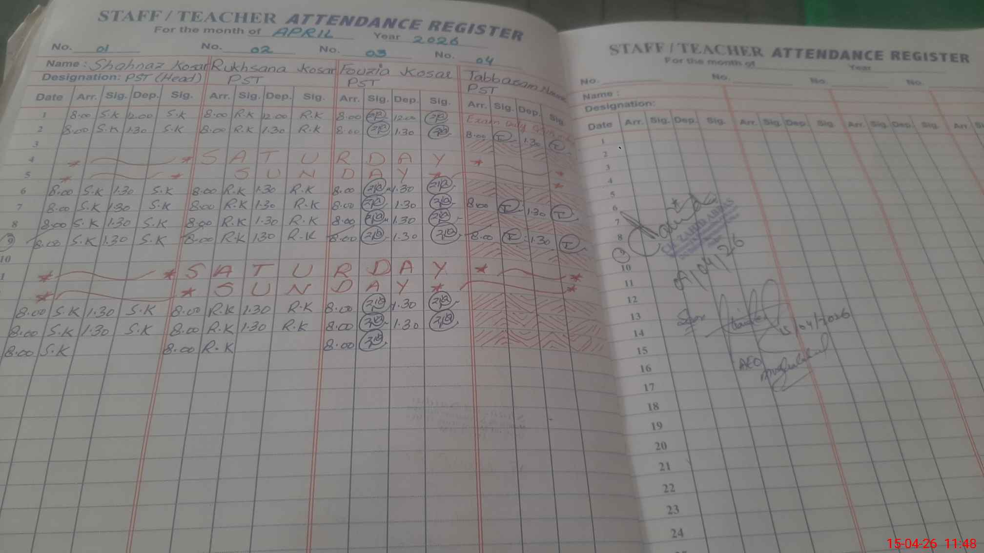 | 37**** | Ta**** Na**** | PST Arts | Regular | 0 | 0 | 0 | 0 | 0 | 0 | 0 | 0 | 0 | Exam Duty |