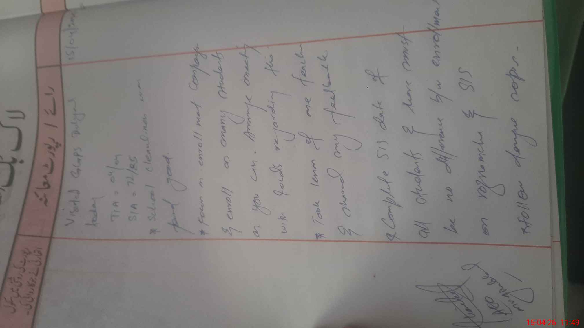 | Attendance Register | Head Teacher | MEA with School | Visit Proof |
