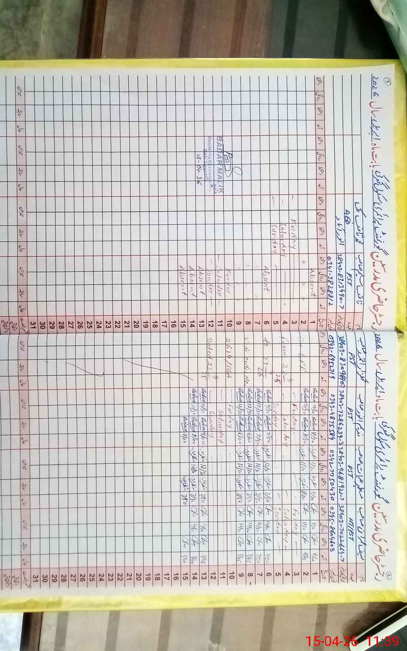 | CNIC | Full Name | Designation | R/C | Absence During Last Calender Month |