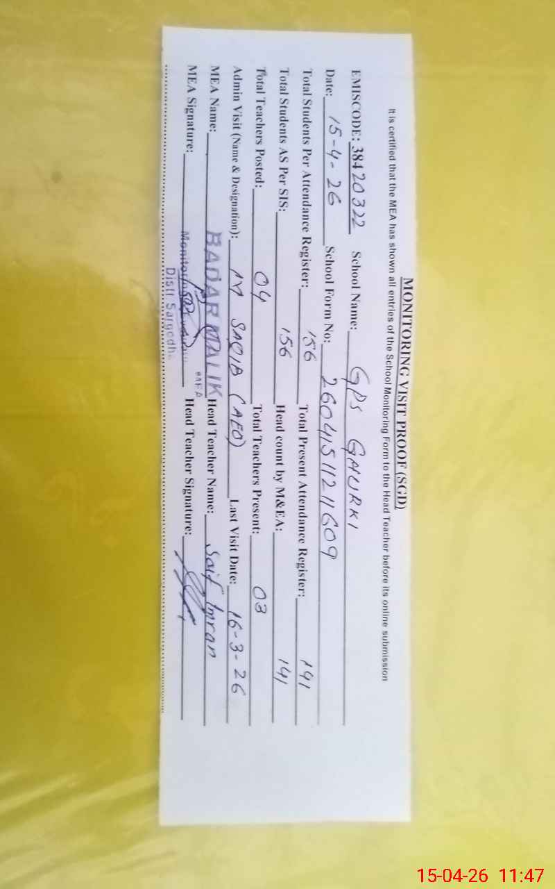 | EMIS Code: 38420322 | Name of School: GPS GHURKI | |||