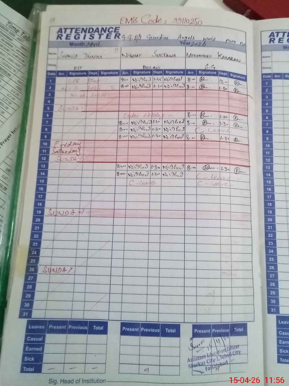 | 33**** | As**** Sa**** | PST Arts | Regular | 0 | 0 | 0 | 0 | 0 | 0 | 0 | 0 | 0 | Exam Duty |