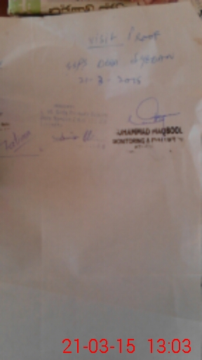 | School Visited by School Health & Nutrition Supervisor (No. of Visits) | 1 | Name1: | TAHIR MEHMOOD | Name2: | |
