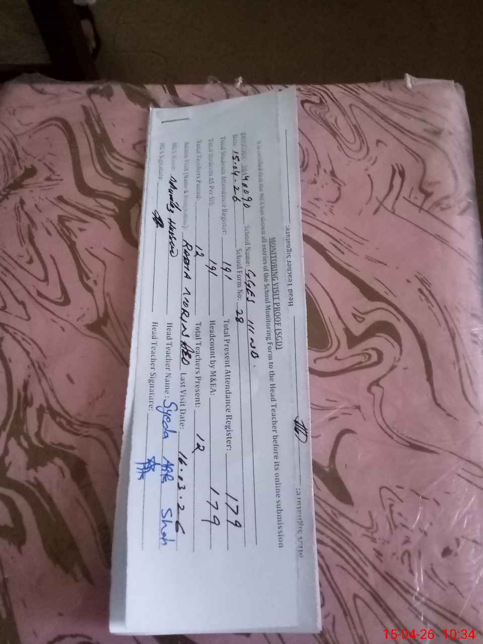 | Attendance Register | Head Teacher | MEA with School | Visit Proof |