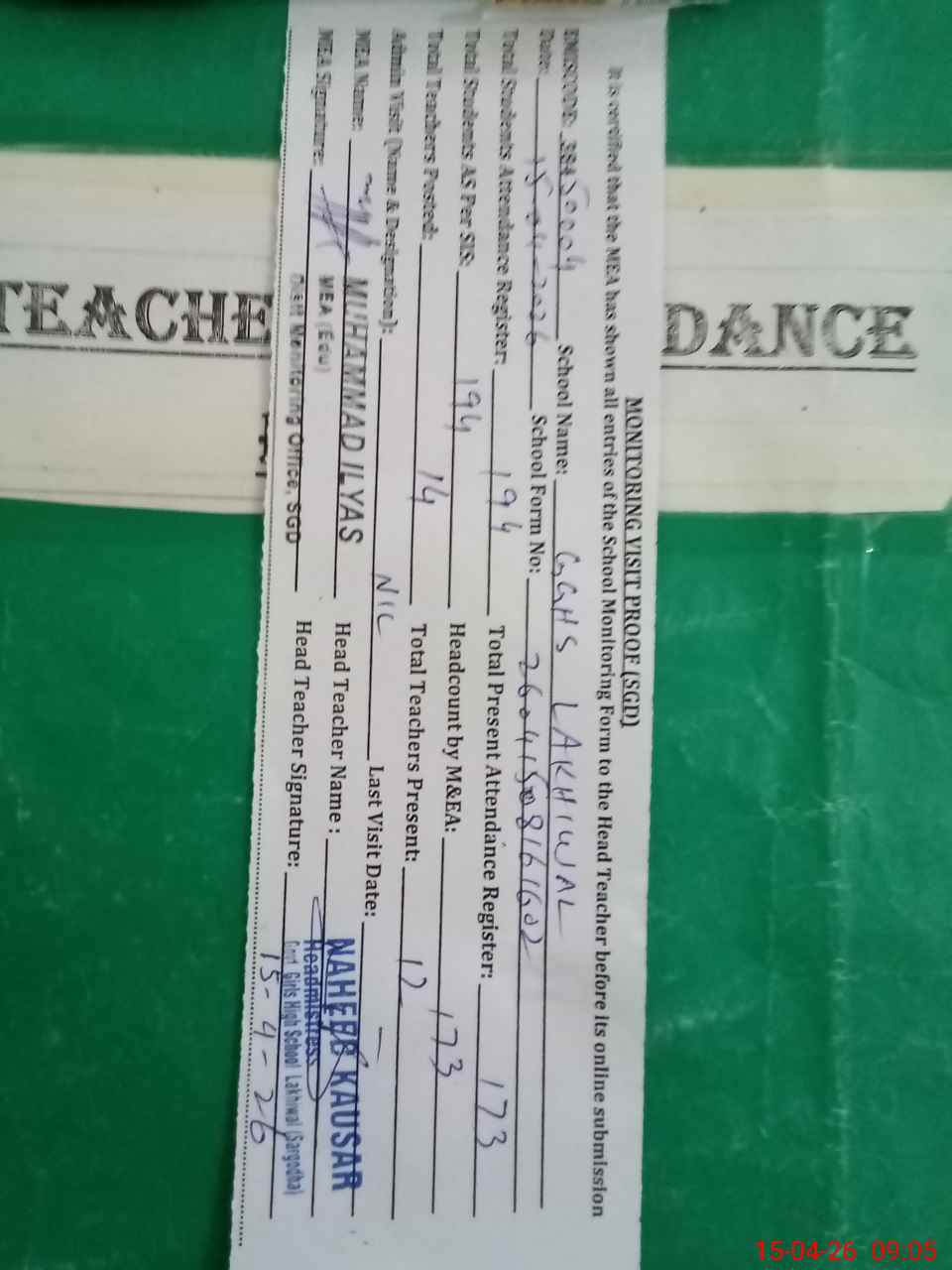 | EMIS Code: 38450004 | Name of School: GGHS LAKHI WAL | |||