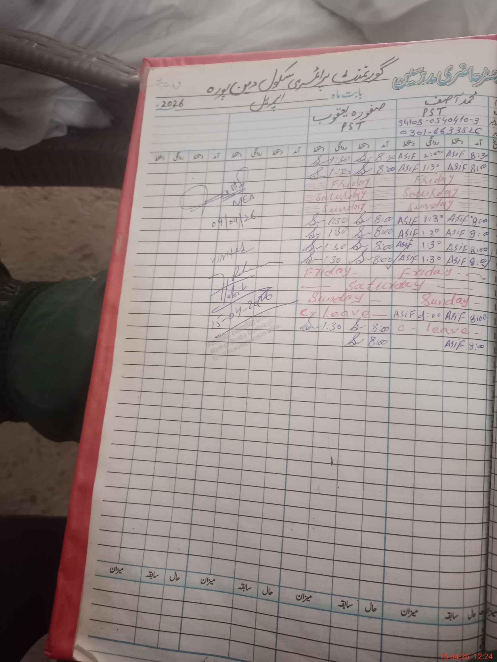 | Name: In**** UlRe**** Designation: (School Headmaster's/Headmistress's) PST Phone/Cell Number: 03**** |