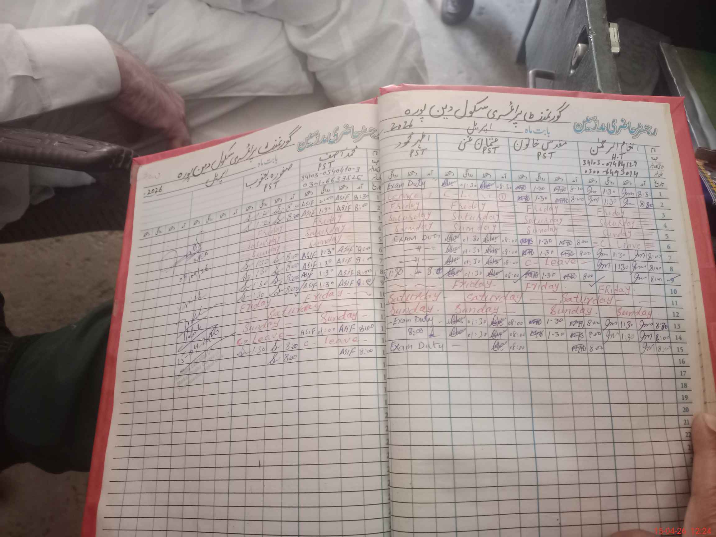 | Leave | Duty | Absent | Maternity | Medical | Ex- Pak |