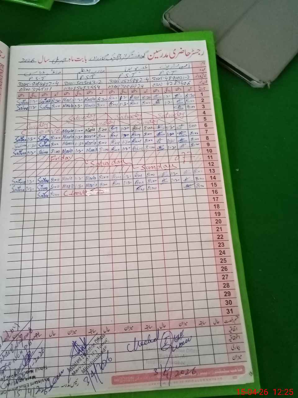 | Name: AS**** SH**** Designation: (School Headmaster's/Headmistress's) PST Phone/Cell Number: 03**** |