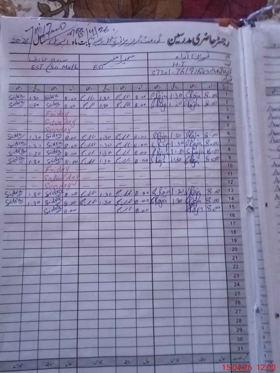 | Name: Sa**** Ar**** Designation: (School Headmaster's/Headmistress's) PST Phone/Cell Number: 03**** |