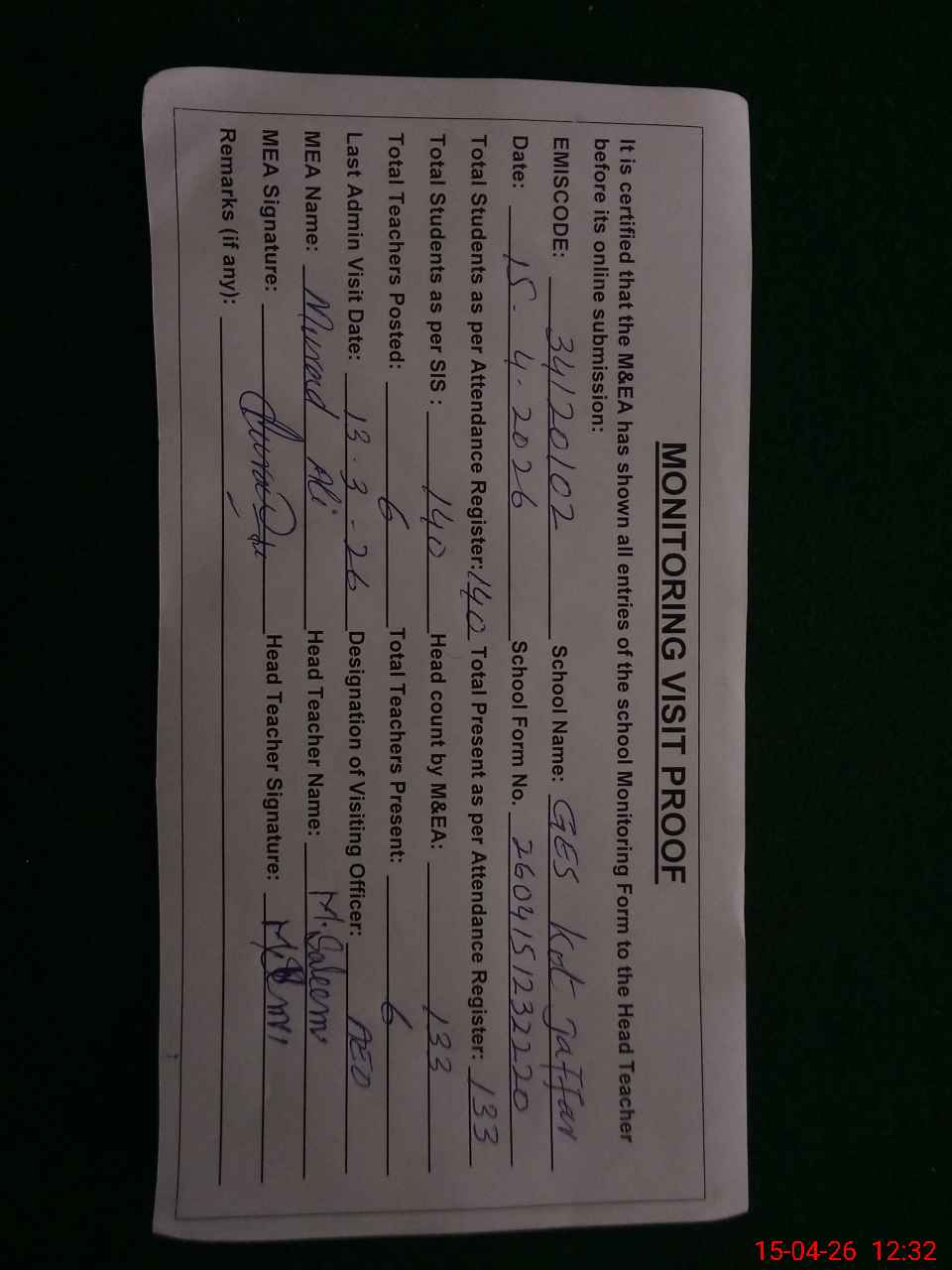 | EMIS Code: 34120102 | Name of School: GES KOT JAFFAR | |||
