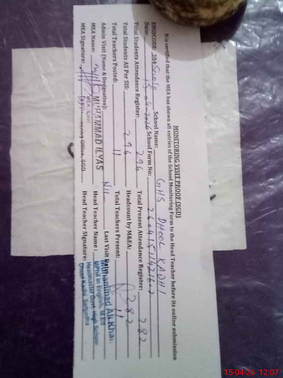 | EMIS Code: 38450010 | Name of School: GHS DHOOL KADHI | |||