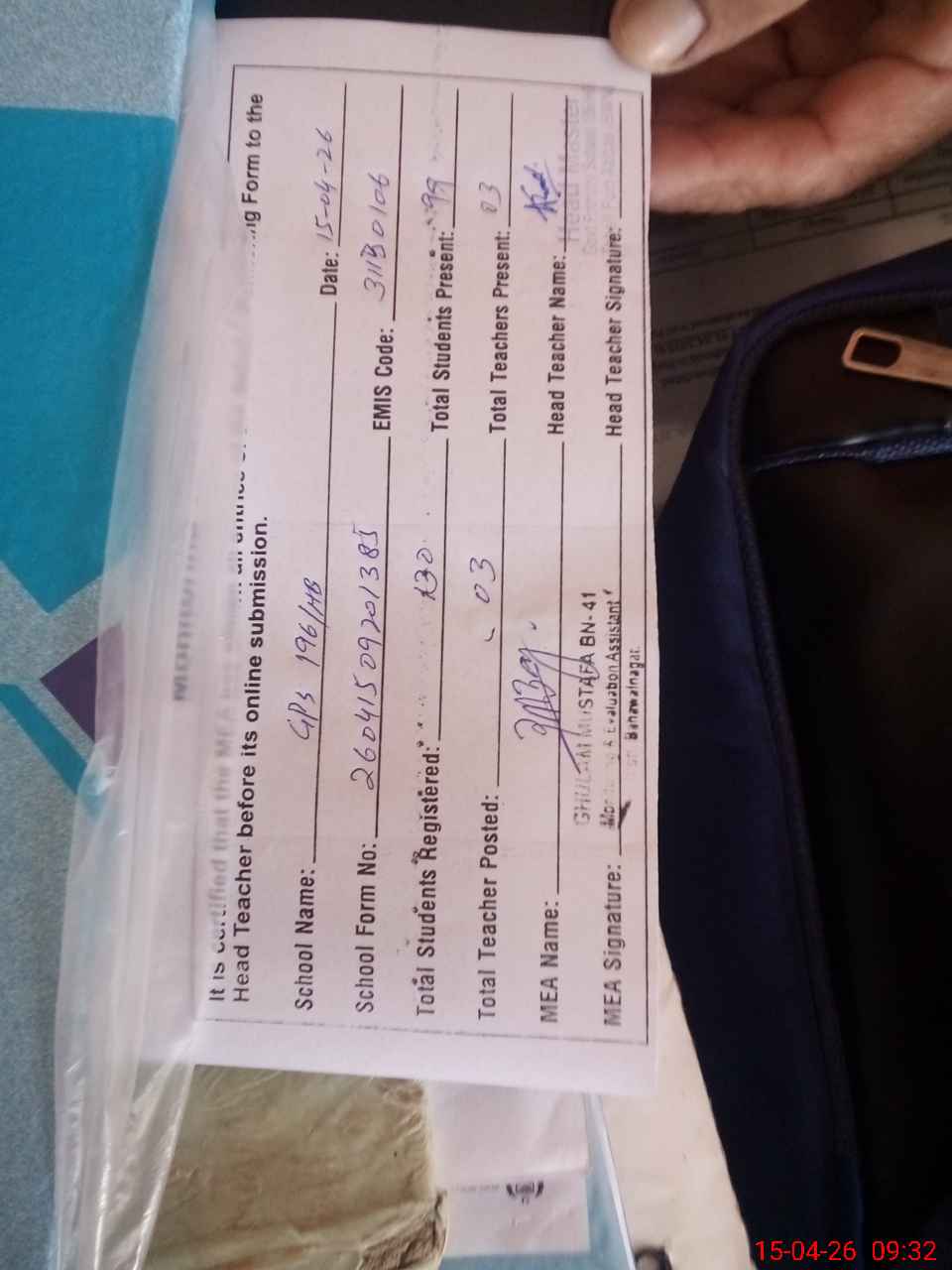 | EMIS Code: 31130106 | Name of School: GPS CHAK 196/HB | |||