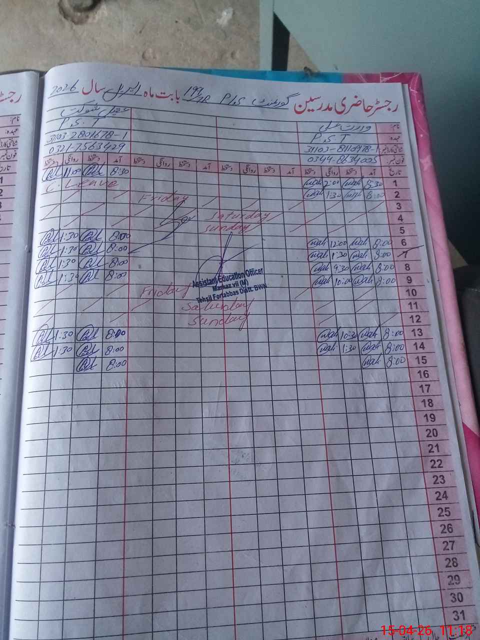 | Name: Wa**** Al**** Designation: (School Headmaster's/Headmistress's) PST Phone/Cell Number: 03**** |
