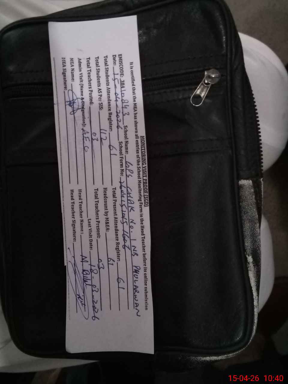 | Attendance Register | Head Teacher | MEA with School | Visit Proof |