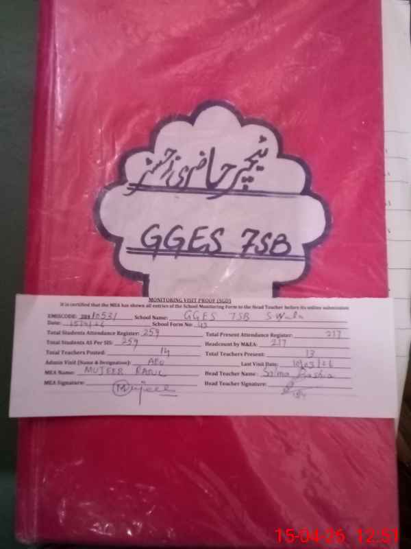 | EMIS Code: 38410531 | Name of School: GGES CHAK NO. 7 SB SYEDAN WALA | |||