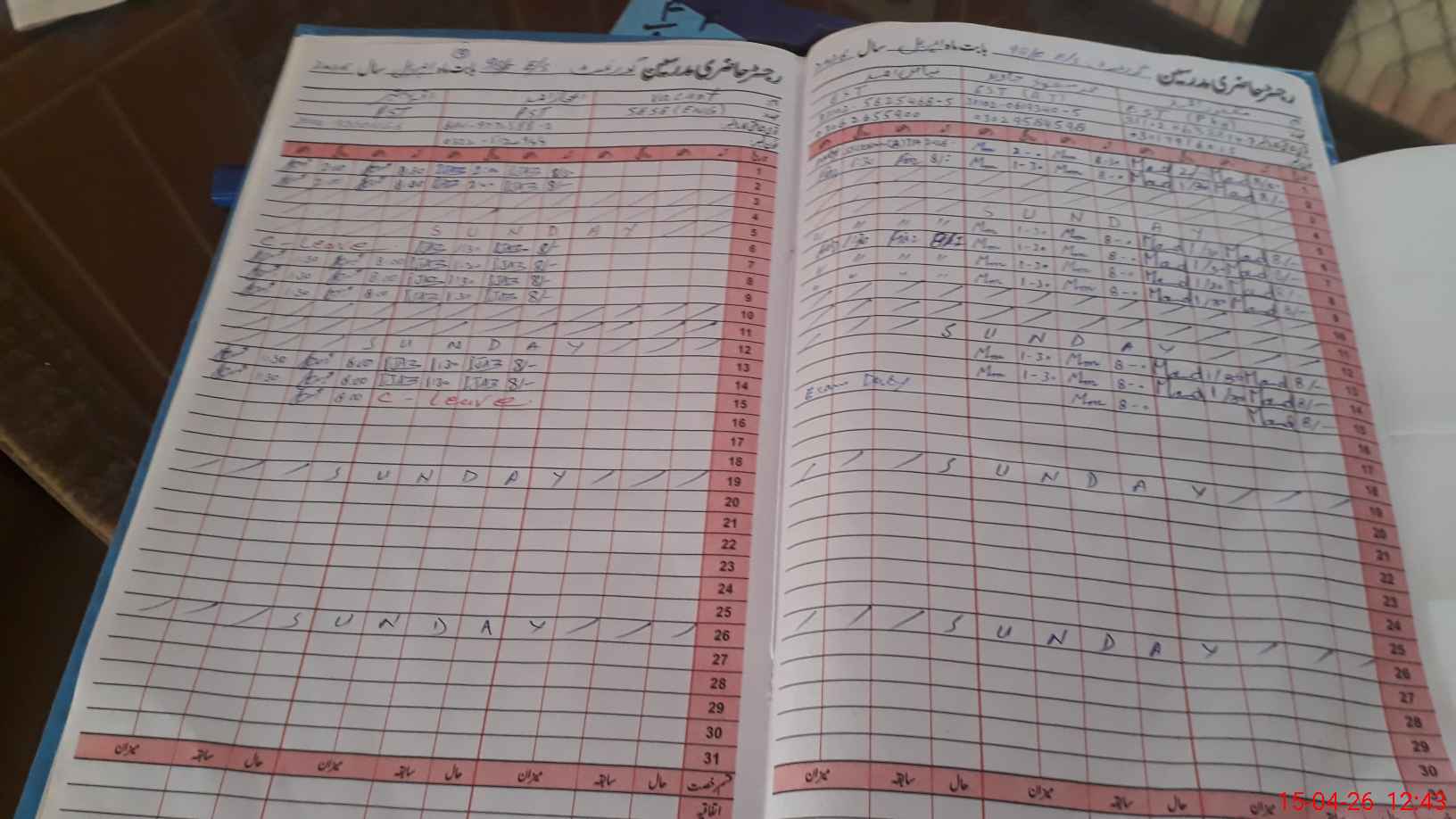 | 31**** | Fi**** Ah**** | EST Urdu | Regular | 0 | 0 | 0 | 0 | 0 | 0 | 0 | 0 | 0 | Exam Duty |