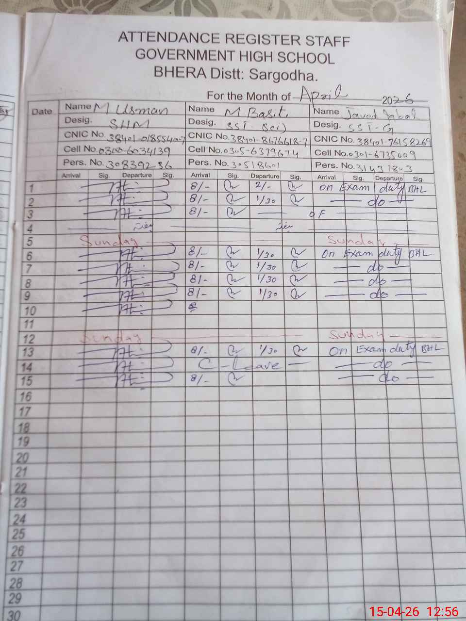 | 34**** | Ja**** Iq**** | SST Arts | Regular | 0 | 0 | 0 | 0 | 0 | 0 | 0 | 0 | 0 | Exam Duty |