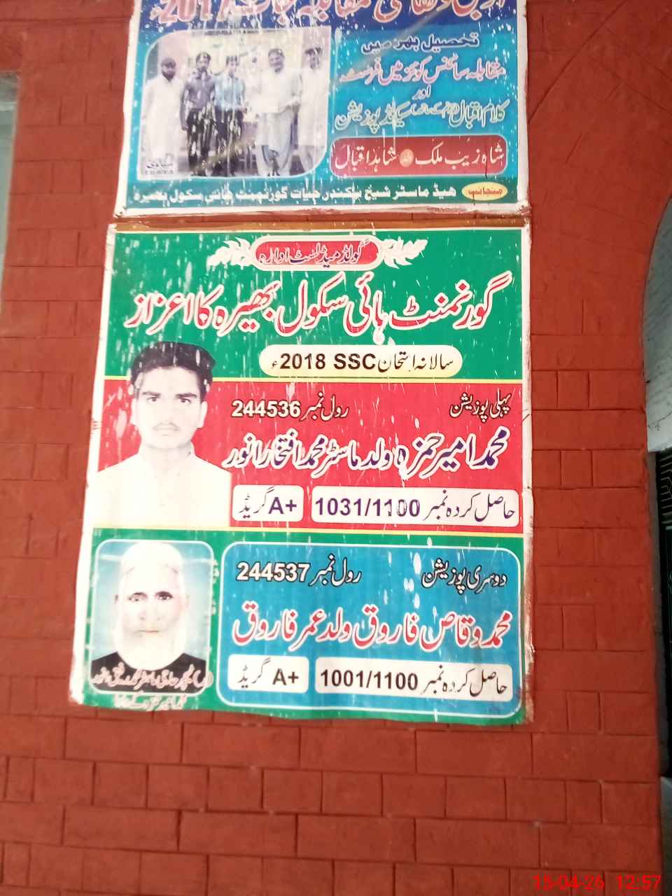 | District: SARGODHA | Tehsil: BHERA | Markaz: SECONDARY-WING | Level: High | |