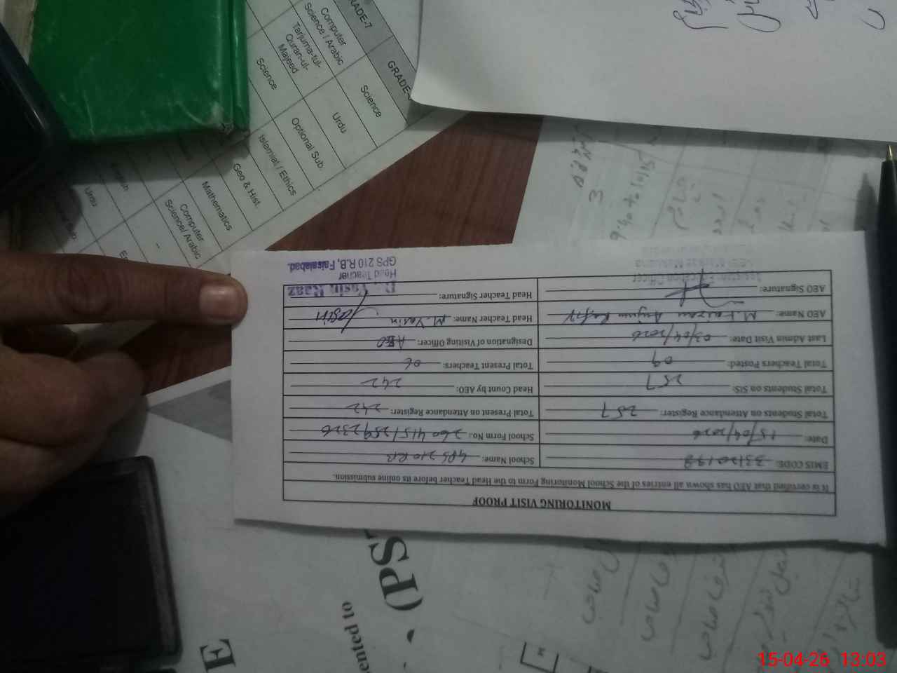 | Attendance Register | Head Teacher | MEA with School | Visit Proof |