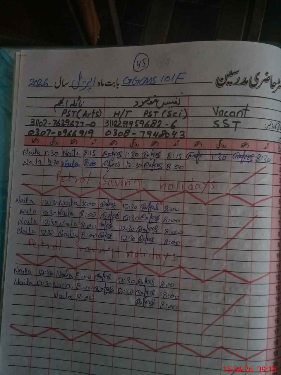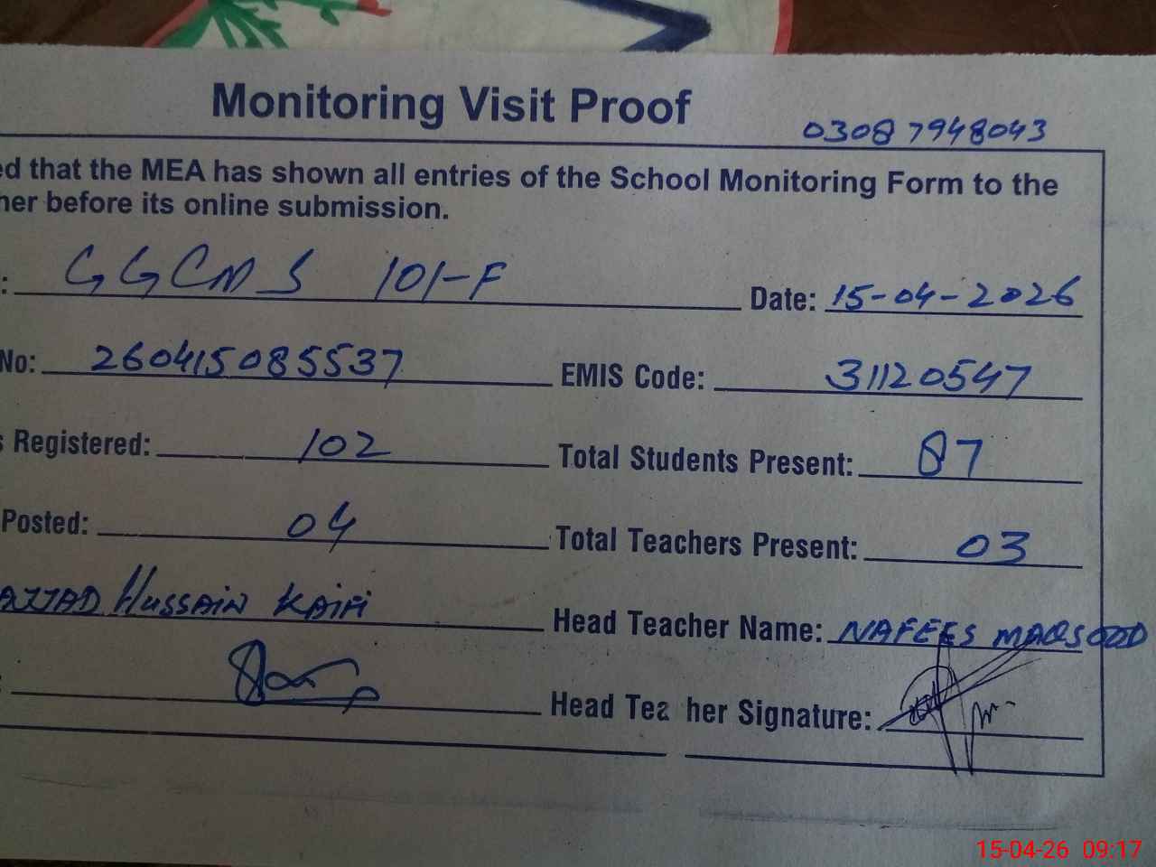 | EMIS Code: 31120547 | Name of School: GGCMS CHAK NO. 101/F | |||