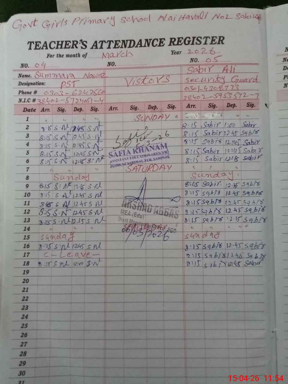 | 38**** | Sa**** Al**** | CHOWKEDAAR | 0 | 0 | 0 | 0 | 0 | 0 | 0 | 0 | 0 | Absent (Un-Authorized) | |
