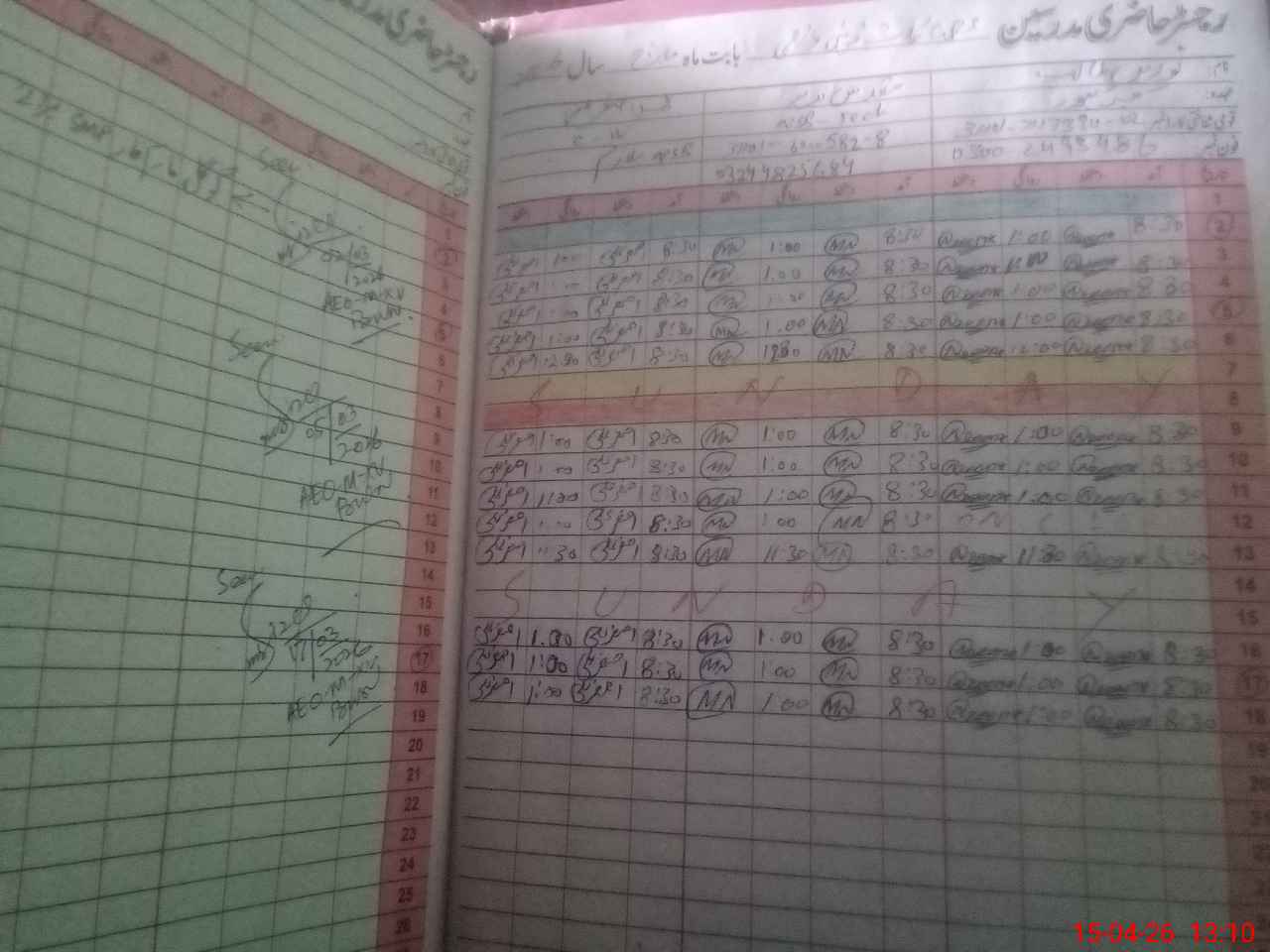 | CNIC | Full Name | Designation | R/C | Absence During Last Calender Month |