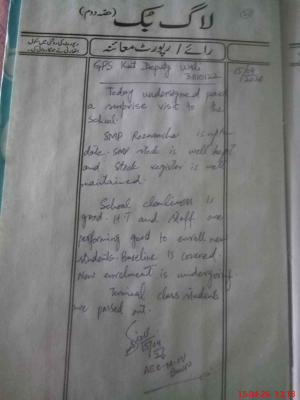 | EMIS Code: 31110122 | Name of School: GPS KAT DEPUTY WALI | |||