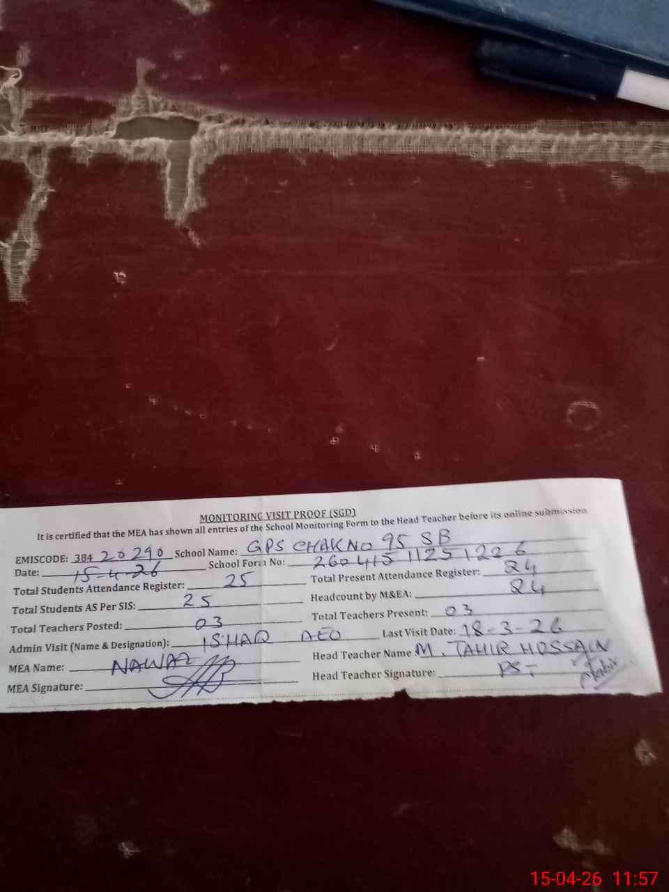 | EMIS Code: 38420290 | Name of School: GPS CHAK NO.95 SB | |||