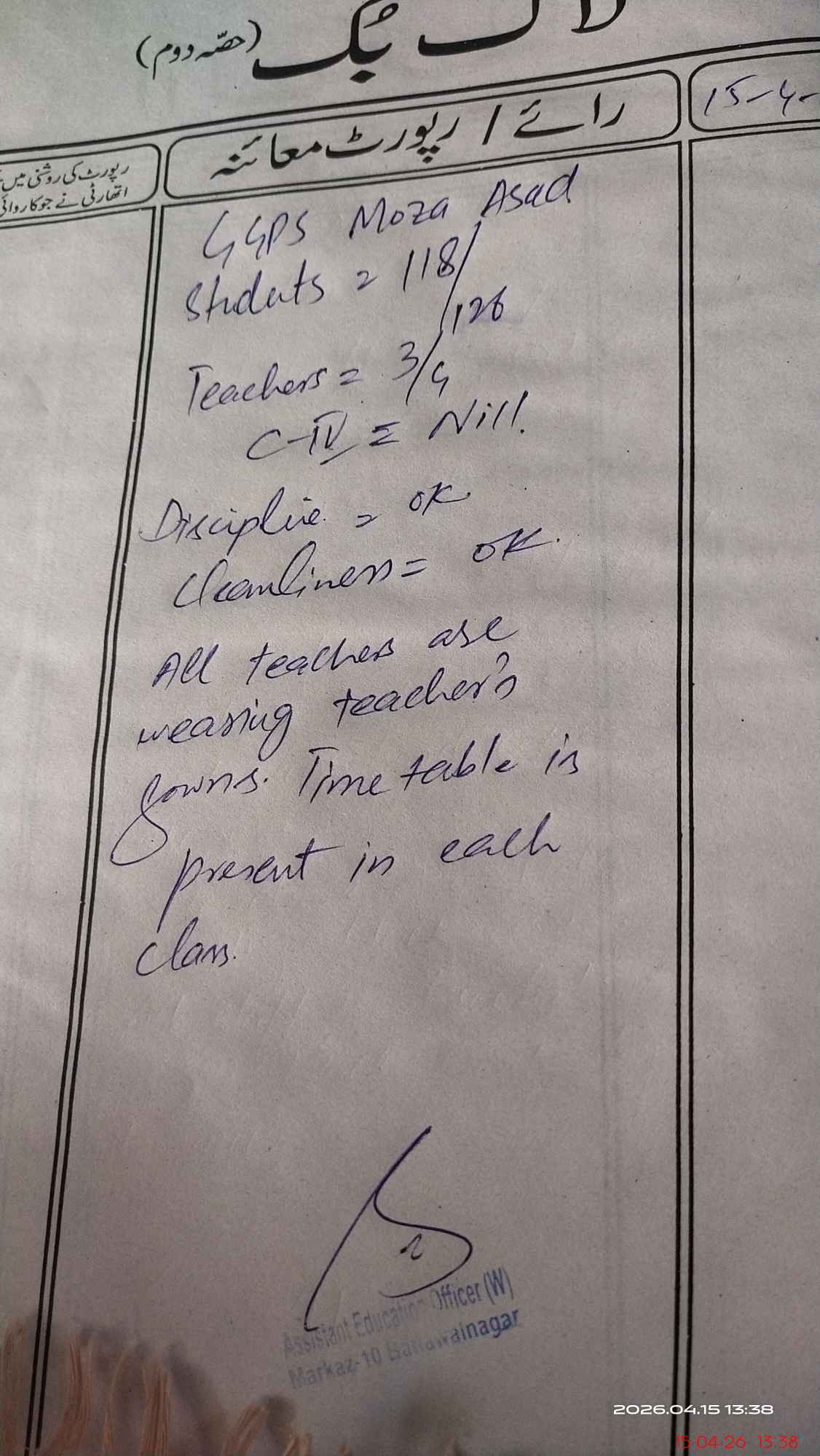 | EMIS Code: 31110359 | Name of School: GGPS MOZA MUHAMMAD ASAD KHAN | |||