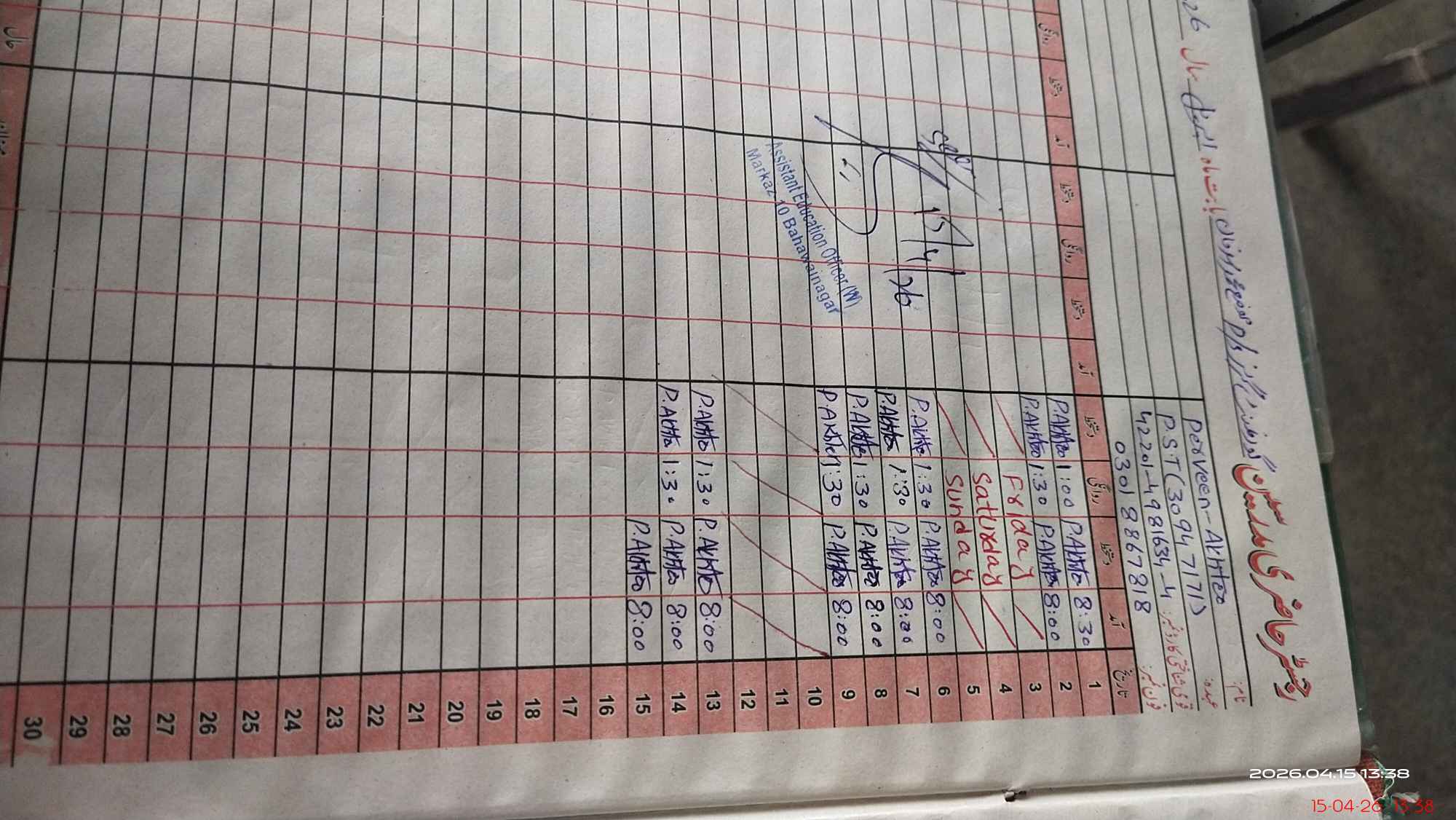 | Name: SH**** NA**** Designation: (School Headmaster's/Headmistress's) PST Phone/Cell Number: 03**** |