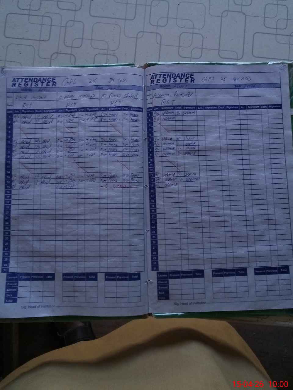 | Name: AB**** HU**** Designation: (School Headmaster's/Headmistress's) PST Phone/Cell Number: 03**** |