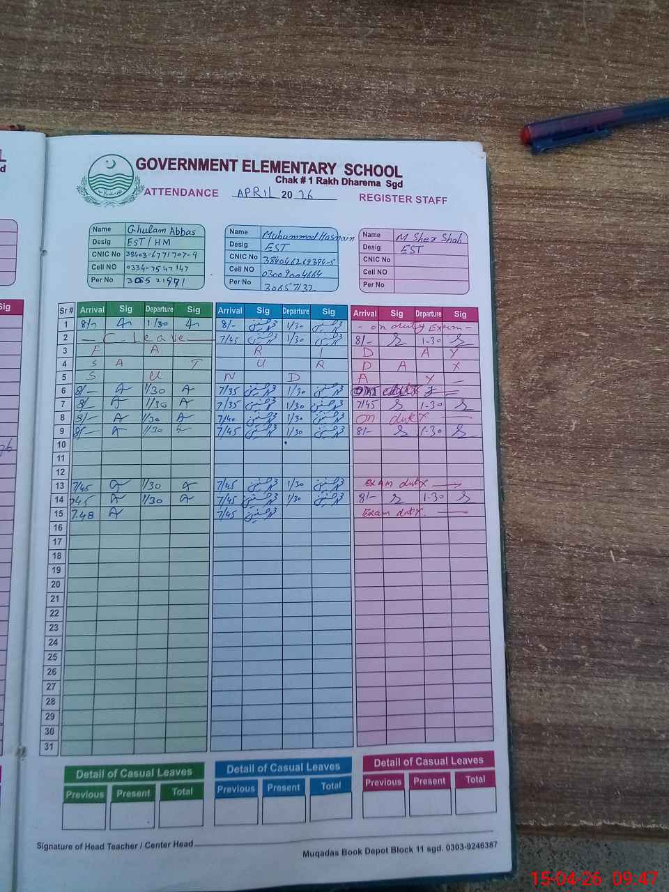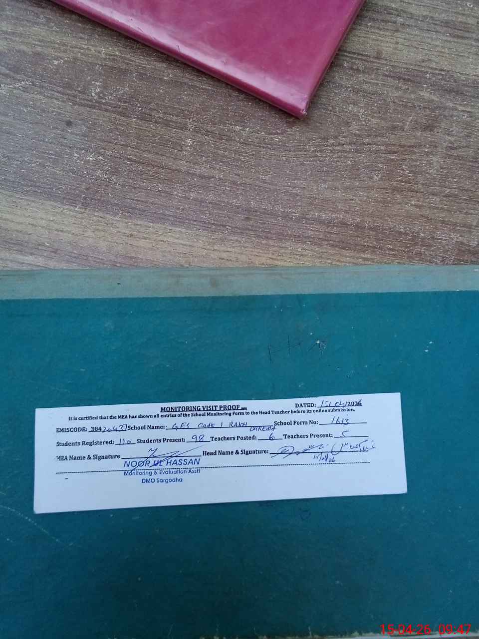 | EMIS Code: 38420437 | Name of School: GES CHAK NO.1 RAKH DHAREMA | |||