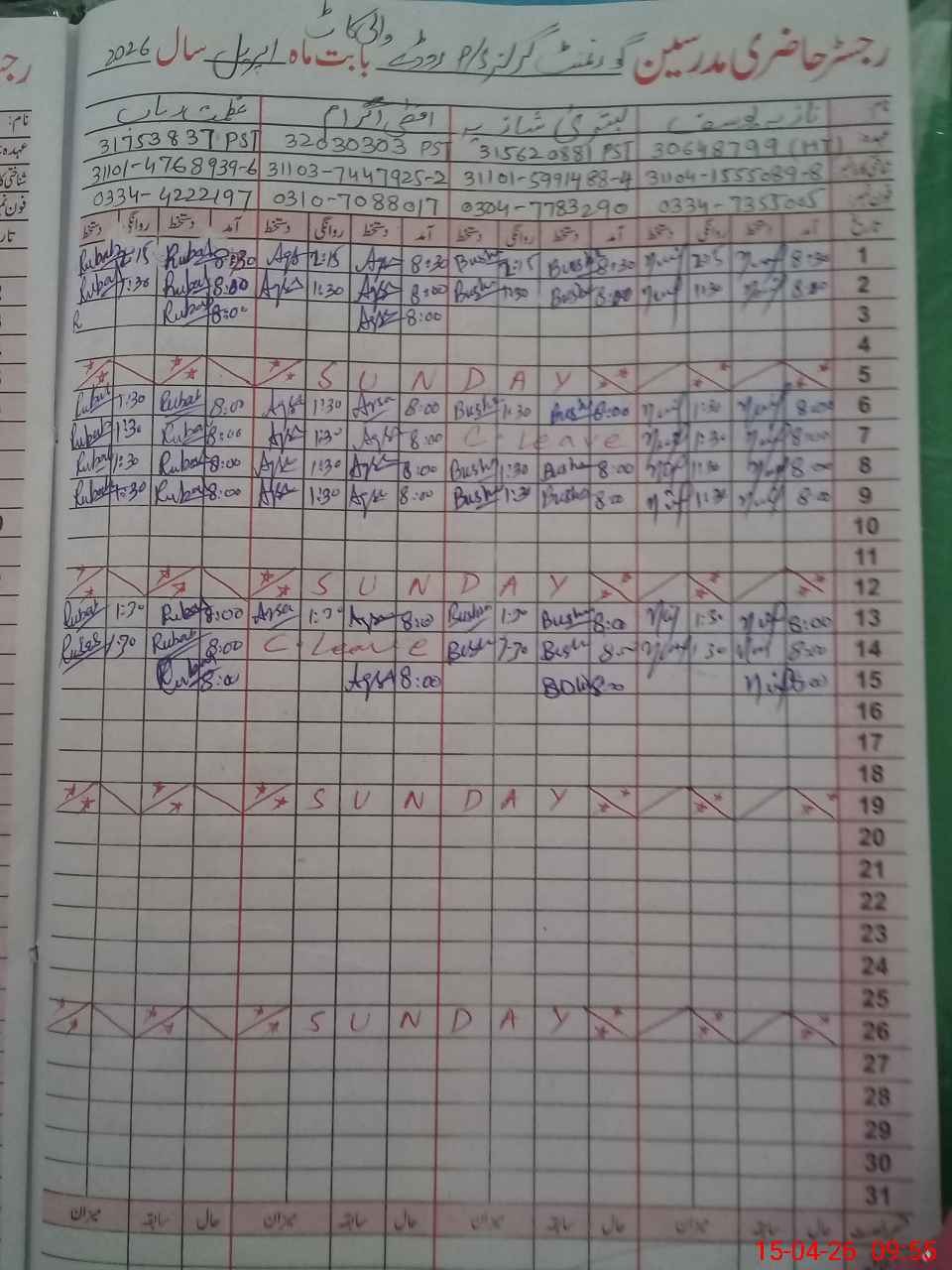 | CNIC | Full Name | Designation | R/C | Absence During Last Calender Month |