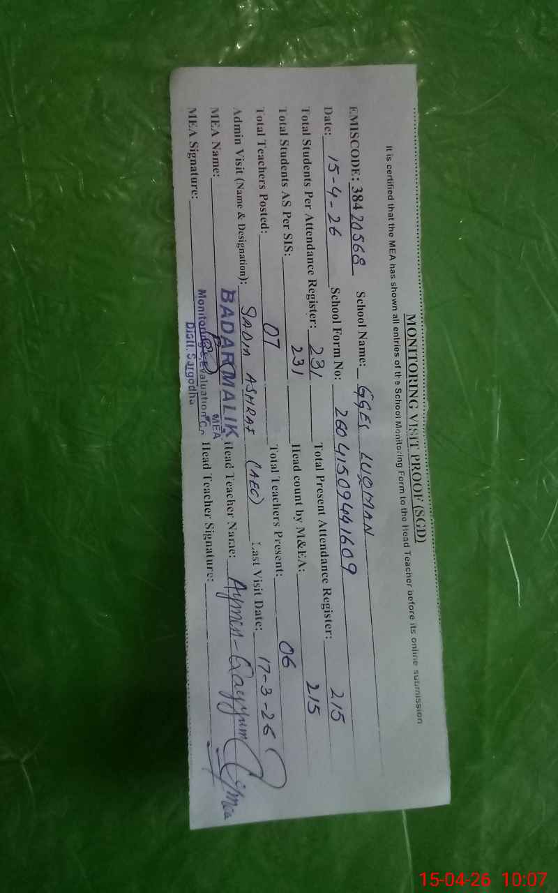| EMIS Code: 38420568 | Name of School: GGES LUQMAN BHAGTANWALA | |||
