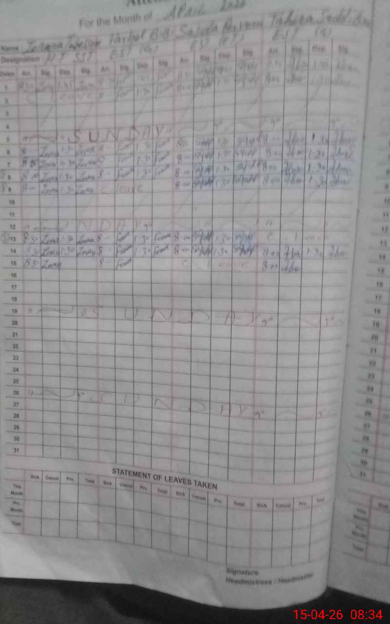 | 31**** | So**** Mu**** | EST Science | Regular | 1 | 5 | 0 | 0 | 0 | 0 | 0 | 0 | 1 | Exam Duty |