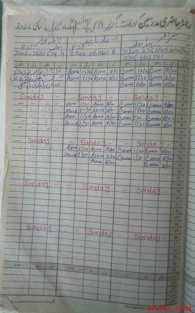| Name: SU**** UM**** Designation: (School Headmaster's/Headmistress's) PST HT Phone/Cell Number: 03**** |