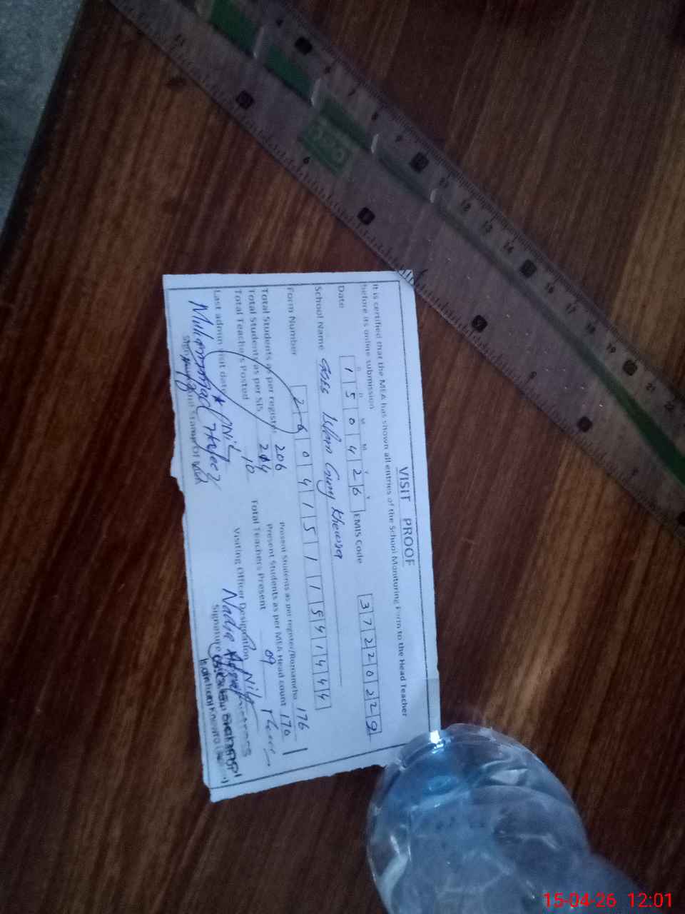 | Attendance Register | Head Teacher | MEA with School | Visit Proof |