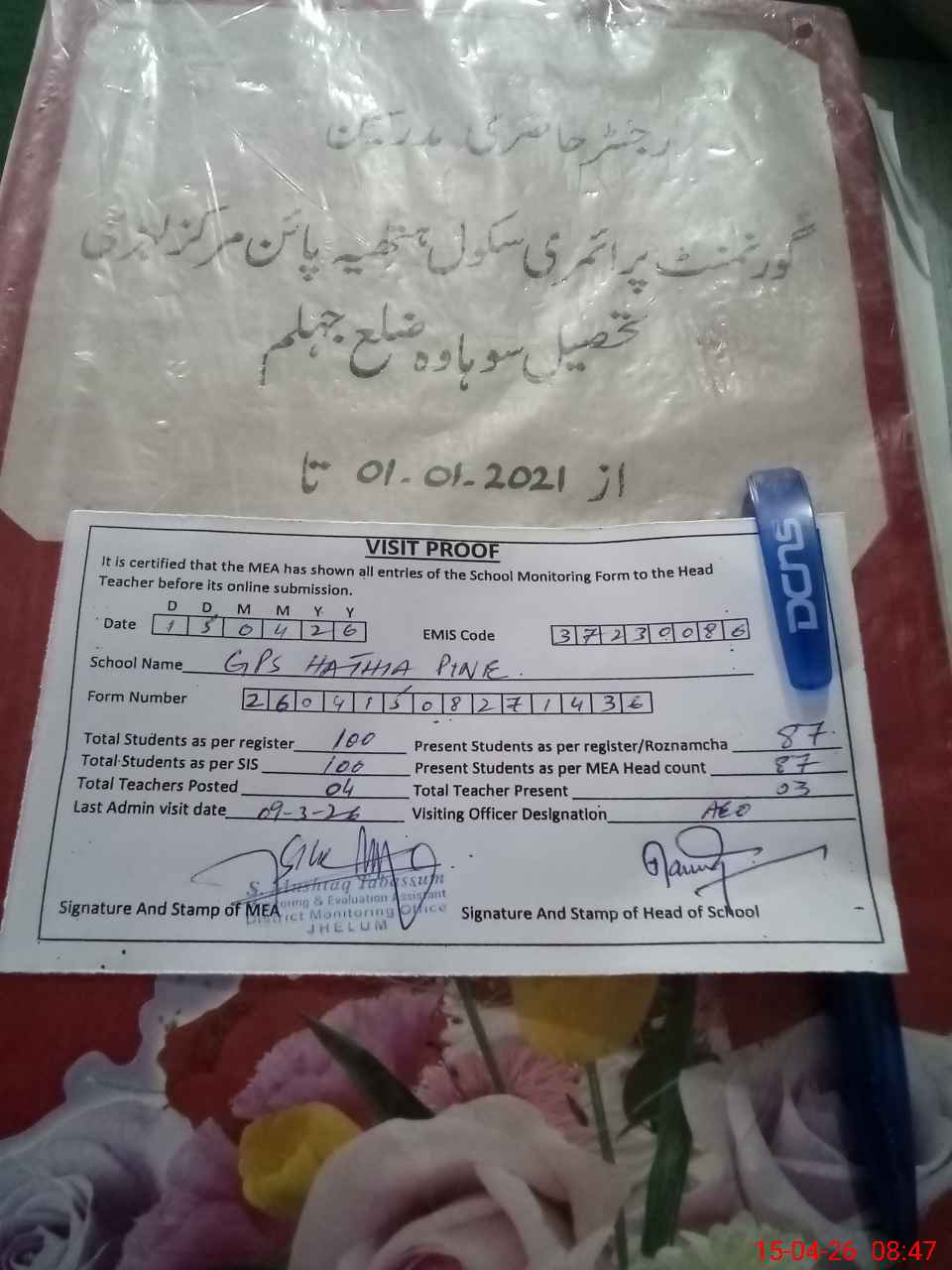 | EMIS Code: 37230086 | Name of School: GPS HATHIA PINE | |||