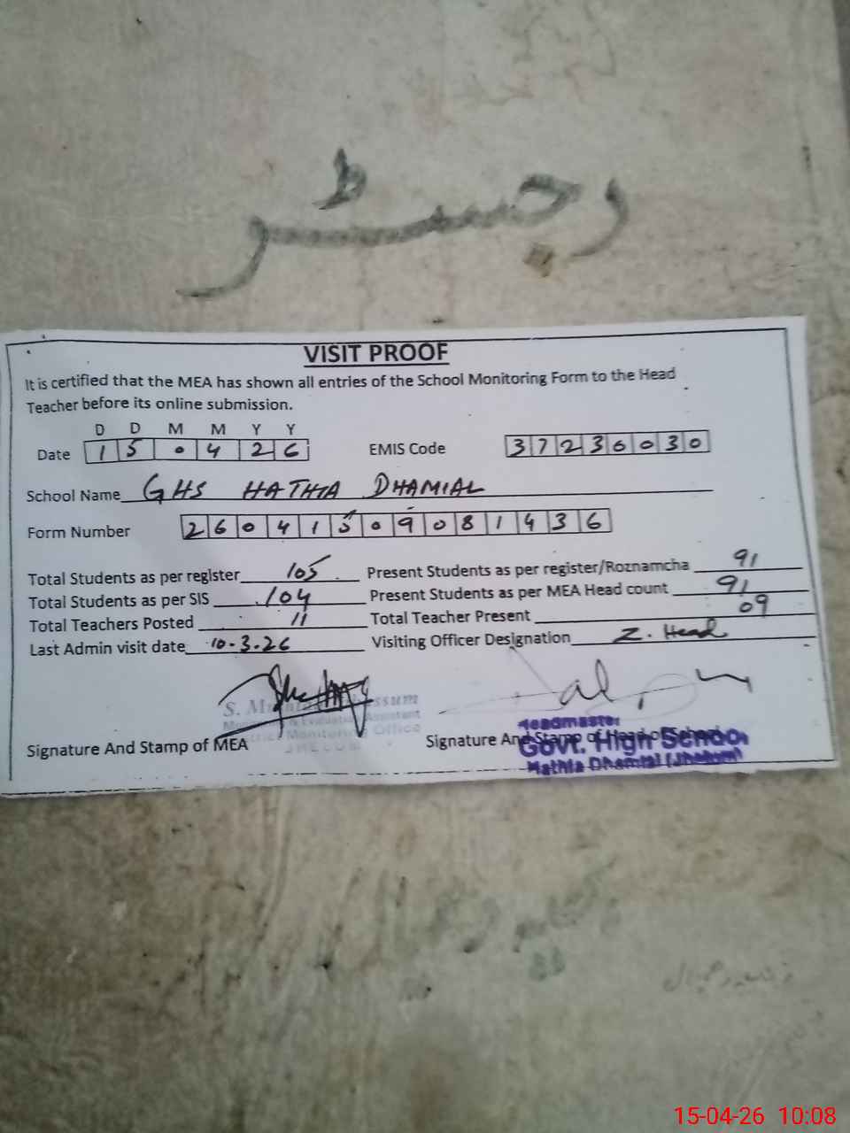 | EMIS Code: 37230030 | Name of School: GHS HATHIA DHAMIAL | |||