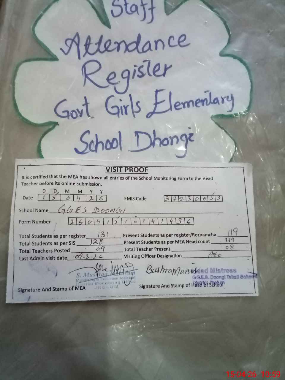 | EMIS Code: 37230053 | Name of School: GGES DOONGI | |||