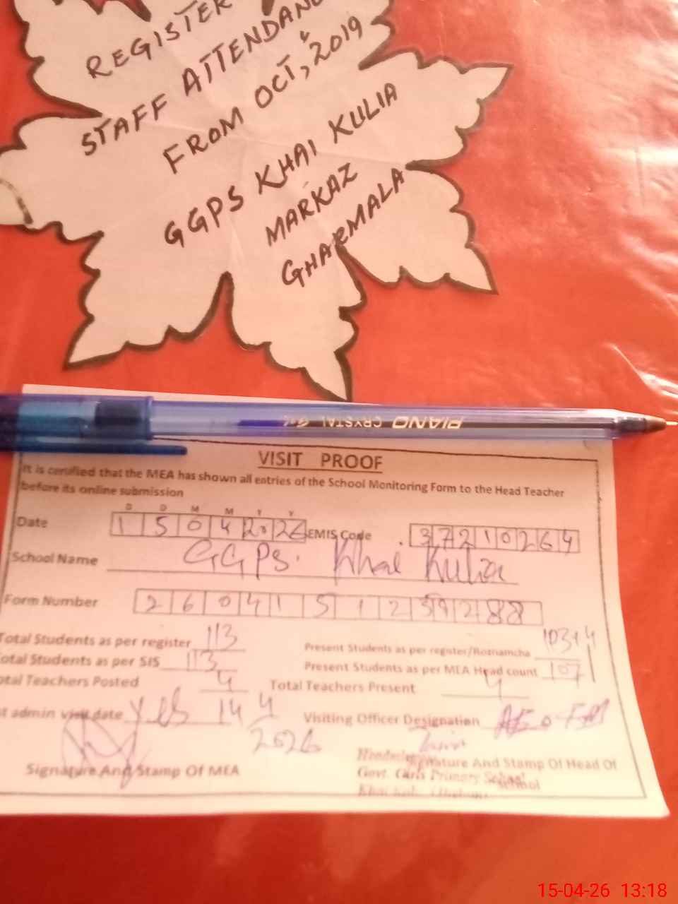 | EMIS Code: 37210264 | Name of School: GGPS KHAI KULIA | |||