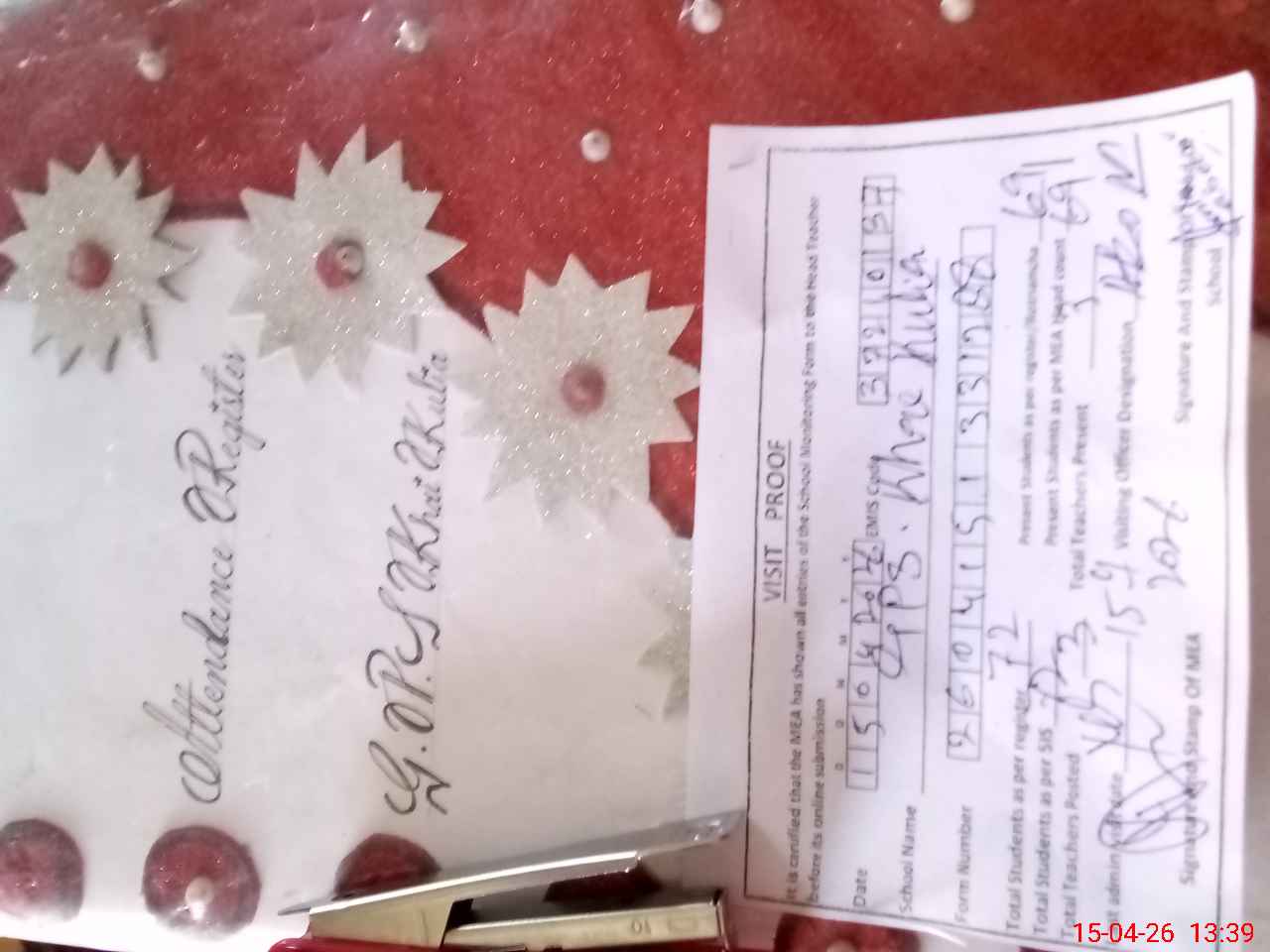 | Attendance Register | Head Teacher | MEA with School | Visit Proof |