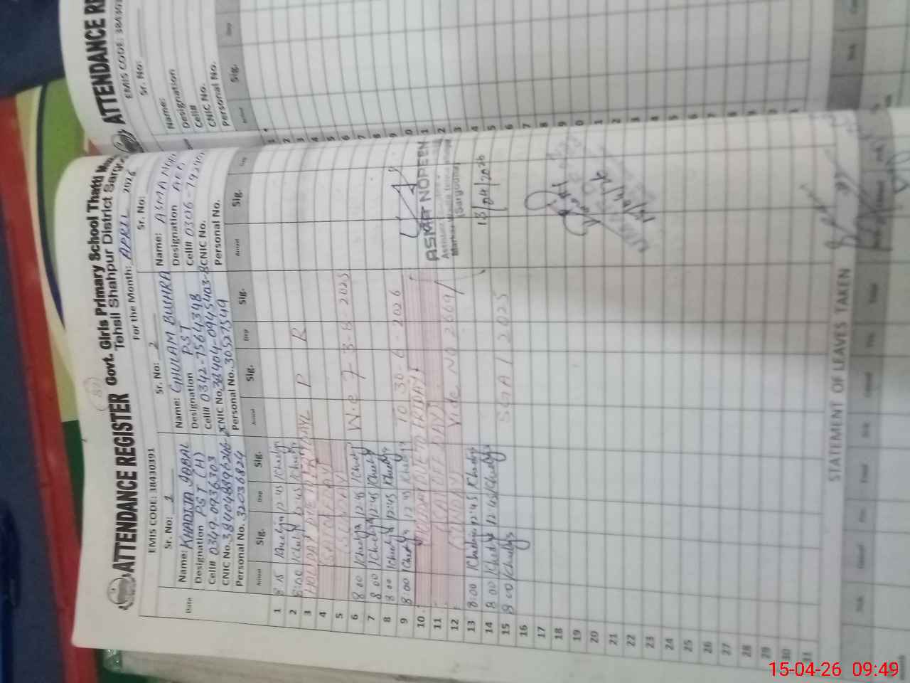 | Name: KH**** IQ**** Designation: (School Headmaster's/Headmistress's) PST Phone/Cell Number: 03**** |