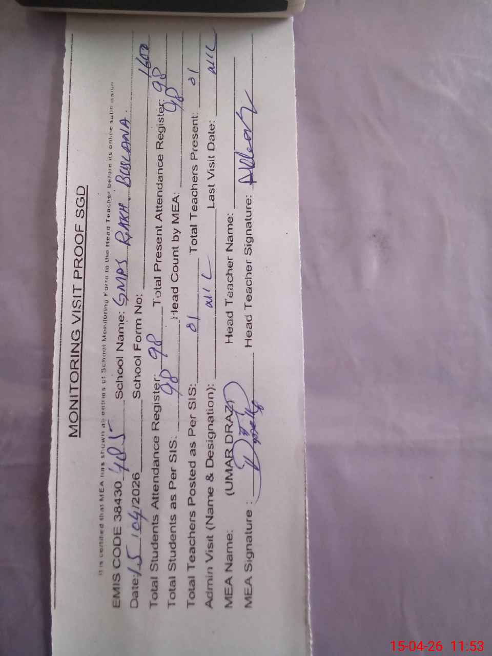 | EMIS Code: 38430485 | Name of School: GMPS RAKH BUSLANA | |||