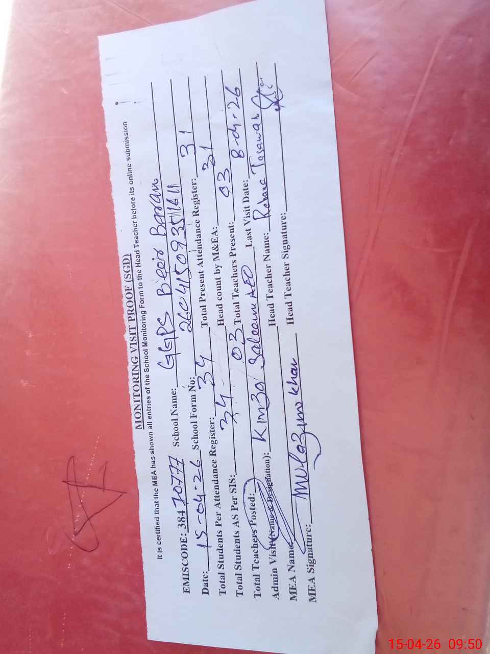 | EMIS Code: 38470777 | Name of School: GGPS BEER BARAN | |||
